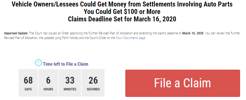 Although it’s an auto parts class action settlement, I think just about everyone qualifies for this lawsuit. You most likely went to a repair shop to fix something involving an auto part, but even if you didn’t, the lawsuit includes people who bought a new car or leased one during the 1995 to 2018 time period.