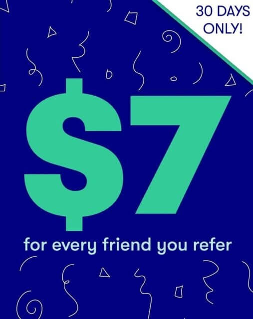 - Earn $7 for every friend you refer