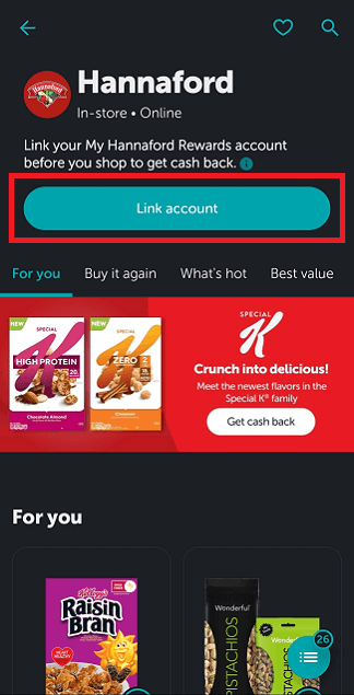 To link a loyalty card, select a participating retailer in the app, select “Link account” at the top of the screen, and enter your loyalty card information: